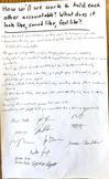 Adults working and living communally for a conservation corps learned about the importance of community and establishing norms. Working together to set boundaries and expectations I helped to facilitate the creation of the community agreements shown above and below. Members discussed things they brought to the community from their prior experiences, what they needed from the community while being a part of it, and what they were looking forward to as a part of their engagement. They also discussed different ways to hold each other accountable should someone fail to abide by the boundaries set by the group.
